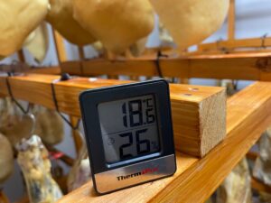 いよいよ生ハムを吊り下げ水分を抜き乾燥させていきます。